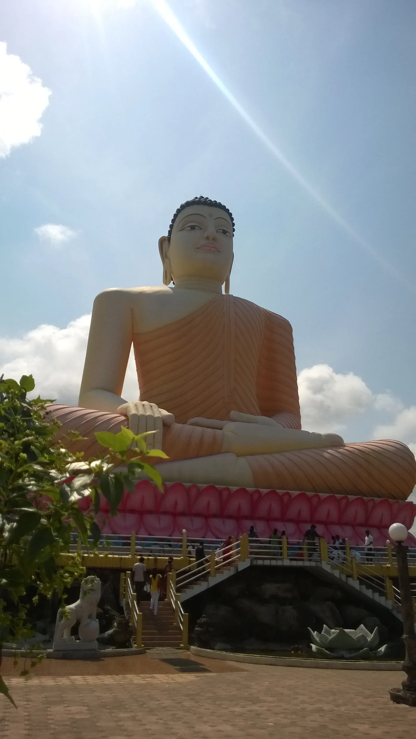 И коначно смо стигли на станицу у Кенди и одмах сам изјурио напоље – телефон је празан! Не могу да пронађем мог домаћина са празним телефоном. Пришао сам једном продавцу и замолио га само да напуним телефон и он ме ОДБИО! Нисам могао да верујем, хтео сам да му платим. Вероватно се спремао да затвори радњу и дан данас не знам зашто ме је одбио. Неки људи су одмах пришли и питали ме шта је проблем и када сам им објаснио да ми је тел празан и да треба да зовем мог домаћина убедили су власника мале радње да ми дозволи пуњење телефона. Он је пристао али без осмеха на лицу. И док сам чекао да се тел бар мало напуни причао сам са тим људима који су ми помогли и орасположио сам се. Питао сам их: „Does it rain here often?“, а човек ми је одговорио „Train station is over there.“ и тако неколико пута, па сам на крају променио тему :). На брду изнад Кендија импозантно стоји статуа белог Буде. Иначе Шри Ланка је земља богата религијом, ту се све религије могу наћи.